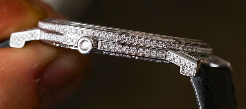 比起沒有鑲鉆的 900P 多出 2 毫米的厚度,是換取這款迷人的珠寶腕表創作的小小的犧牲。期望這種類型的寶石鑲嵌具有更少的額外空間是不合理的,而且,就個人而言,這款手表并沒有真正感覺厚很多,即使它是一塊更厚的手表,也是超薄的對應部分。