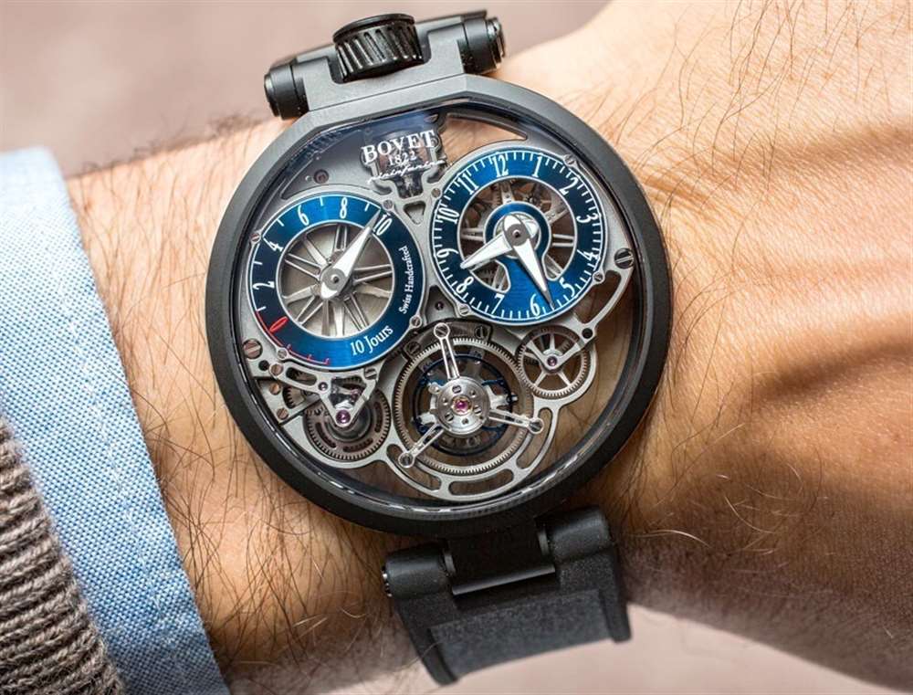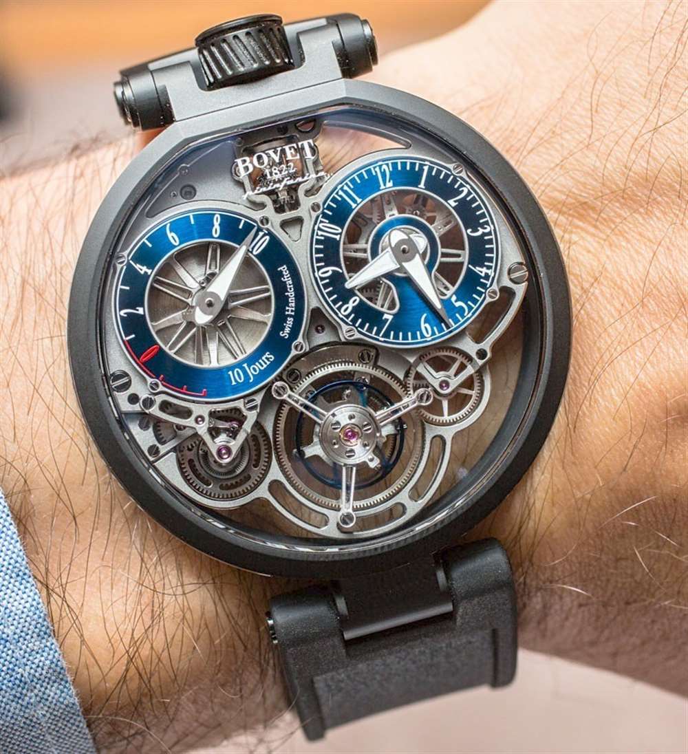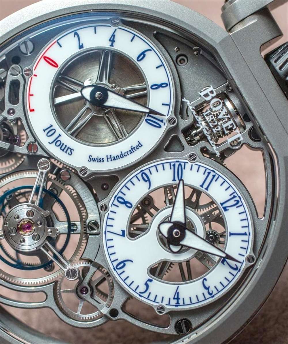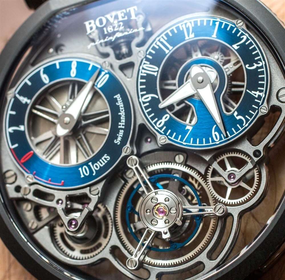 機芯結構和鏤空是純粹的“高級鐘表學”,具有一系列精美而現代的裝飾細節和修飾。我知道 Bovet 時計的設計并不適合所有人,但我仍然相信大多數鐘表愛好者都能輕松地支持這些手表的技術和技巧。此外,如此顯眼的大型飛行陀飛輪腕表以及涂有明亮 SuperLumiNova 夜光涂層的指針(請注意,在這些原型型號上,指針是手繪的,因此流明看起來不均勻)的頻率有多高。