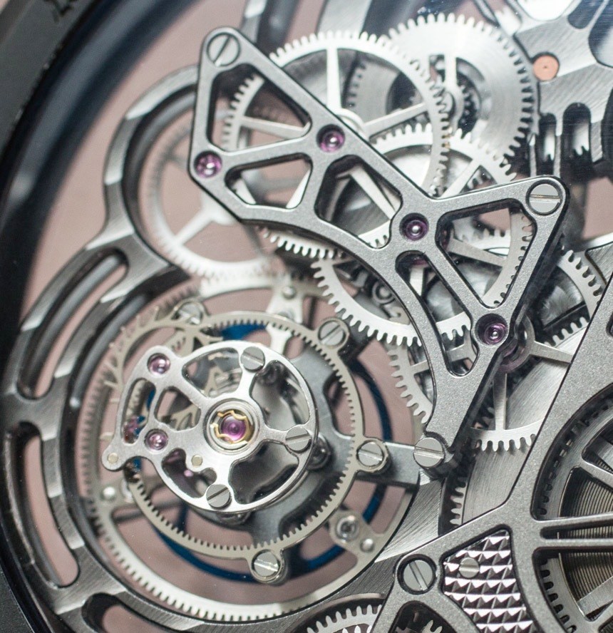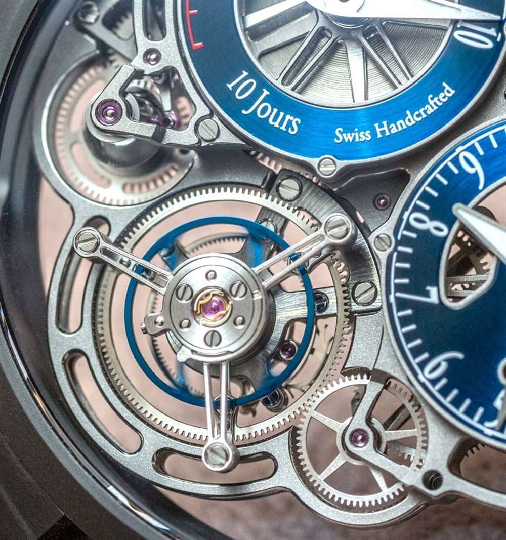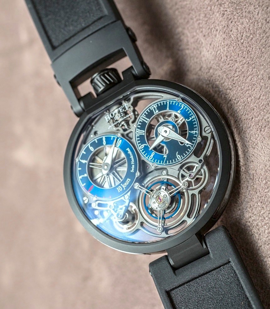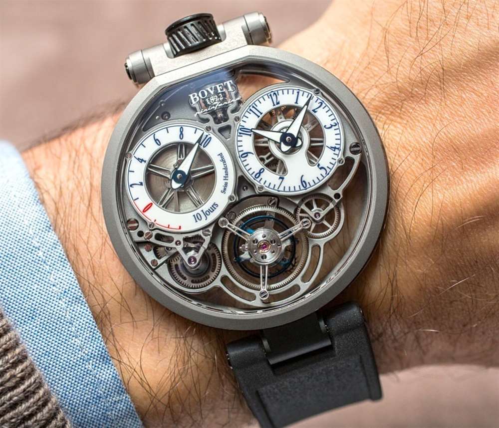 機芯結構和鏤空是純粹的“高級鐘表學”,具有一系列精美而現代的裝飾細節和修飾。我知道 Bovet 時計的設計并不適合所有人,但我仍然相信大多數鐘表愛好者都能輕松地支持這些手表的技術和技巧。此外,如此顯眼的大型飛行陀飛輪腕表以及涂有明亮 SuperLumiNova 夜光涂層的指針(請注意,在這些原型型號上,指針是手繪的,因此流明看起來不均勻)的頻率有多高。