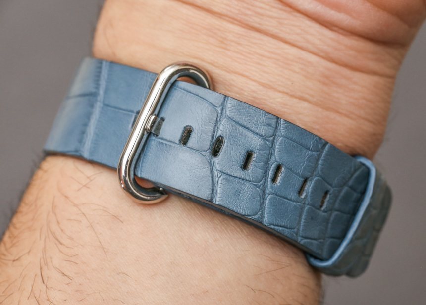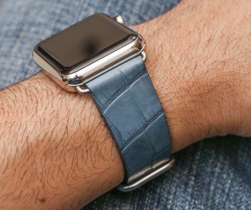 此外,考慮到某些動物皮的運(yùn)輸問題和 CITES 問題,我認(rèn)為 Apple 不會正式為 Apple Watch 提供鱷魚皮或其他異國情調(diào)的皮表帶,因此對這些產(chǎn)品感興趣的消費(fèi)者將不得不轉(zhuǎn)向較小的精品店像 Bianca Mosca 這樣的操作。他們的鱷魚皮 Apple Watch 表帶價格為每條375美元,無論尺寸或顏色如何。