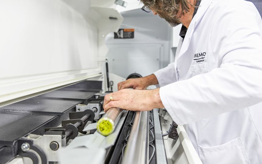 在一系列新機器(例如精美的 11 軸 CNC 銑床和激光雕刻機)上方,是 Oracle Team 美洲杯帆船賽的超長硬帆尖,恰好存放在這里。我猜 Larry Ellison 只是把它交給了 Bremont 男孩,然后說“你能用它做任何事嗎?”?去年,Bremont 宣布了他們最近的合作伙伴關系,其中不僅包括贊助 Oracle 創始人拉里埃里森的“美國隊”,還包括贊助美洲杯帆船賽——一項最初在英國樸茨茅斯開始的賽事。