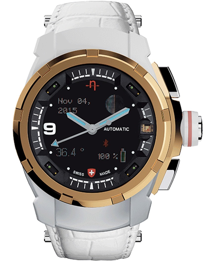 現在判斷 Hyetis Alpha 在現實世界中的表現如何還為時過早,但我堅信該公司對智能手表的理念在很大程度上是正確的。正如我所說,表盤使用兩個 OLED 屏幕來指示圍繞傳統指針的分鐘、小時和秒的各種信息。這款模擬時間顯示由瑞士 Sellita SW300 自動機芯提供動力。Hyetis Alpha 內部不僅有一個真正的自動機械手表,而且如果你的電池沒電了,至少你還能看時間。此外,這意味著始終有一個“真實”的表盤(絕不是空白屏幕),這是時計中至關重要的部分,具有鐘表愛好者認為它具有“靈??魂”的必要特征。