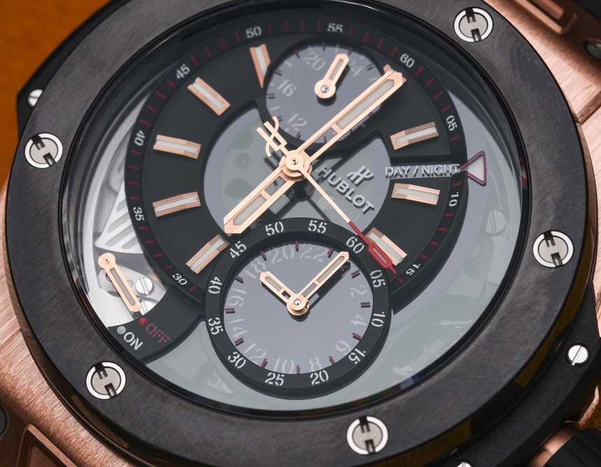 關于 Hublot Big Bang Alarm Repeater 表盤,您首先會注意到的一件事是主表盤有點偏離中心。這可能是我所知道的唯一一款像這樣的 Hublot Big Bang 手表——而且它可能是唯一一款。這可能看起來是一件小事,但它賦予了這款手表在品牌中完全獨特的個性,盡管表殼顯然是現代的 Big Bang。