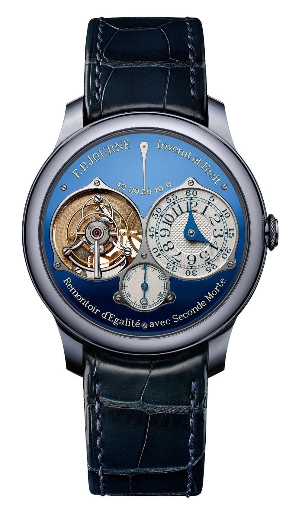 想要更多的藍(lán)色?然后你會(huì)喜歡我最喜歡的三重奏手表,一個(gè)藍(lán)色和鉭版本的 FP Journe Tourbillon Souverain,被稱(chēng)為 Tourbillon Souverain Bleu。對(duì)于這款獨(dú)特的表款,F(xiàn)P Journe 基本上將 Chronometre Bleu 和 Tourbillon Souverain 組合成一個(gè)新表款。話雖如此,這款 FP Journe Tourbillon Souverain Bleu 的表盤(pán)可能更像是鏡像(與 Chronometre Bleu 相比)。看到機(jī)芯的復(fù)雜性,以及鉭金屬表殼和 18k 玫瑰金自制 FP Journe 機(jī)芯之間的對(duì)比,這很可能是一個(gè)令人驚嘆的模型。