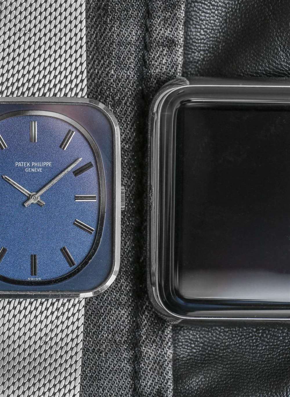 3582 表殼和表鏈似乎在 Apple Watch 中復(fù)興了多少,這有點(diǎn)不可思議。當(dāng)然,29 毫米寬乘以 34 毫米高(厚度僅為 6.7 毫米)的百達(dá)翡麗比 42 毫米高的 Apple Watch 小得多,但假設(shè)百達(dá)翡麗的尺寸按比例增加,它們看起來(lái)會(huì)出奇地相似。這里的平行設(shè)計(jì)充分說(shuō)明了手表是如何被構(gòu)思出來(lái)的,而思想是如何在完全不同的地方、在完全不同的時(shí)間、做完全不同的事情,有時(shí)會(huì)得出相似的結(jié)果。