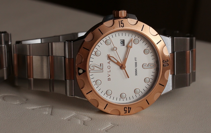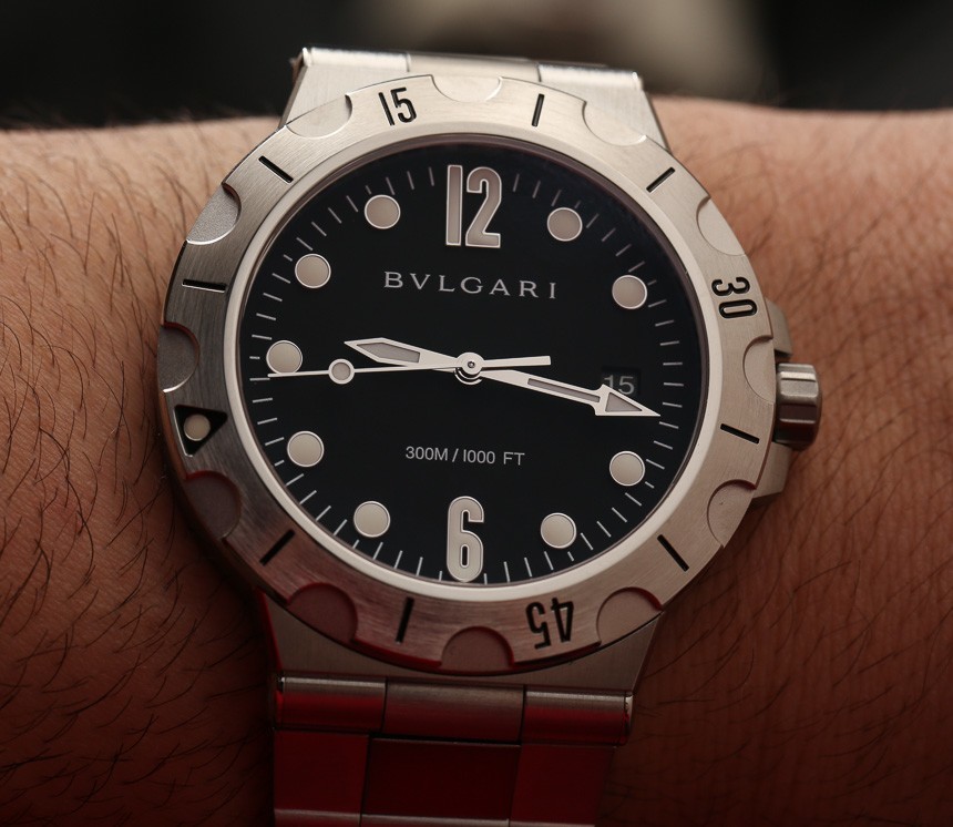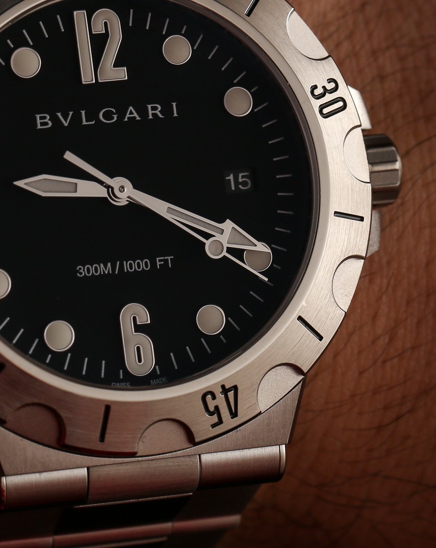 2015 年 Bulgari Diagono Scuba 手表的新品還有機芯。Bulgari 現在使用其內部制造的 BVL 191 自動機芯,頻率為 4Hz,與曾經使用的基本瑞士 ETA Diagono 型號并沒有太大區別。這很有趣,因為使用內部制造的機芯給品牌帶來了更多的街頭信譽,但通常情況下,如果它們是由品牌內部制造或采購的,那么簡單的時間和日期自動機芯不會有太大區別像 ETA 這樣的供應商。