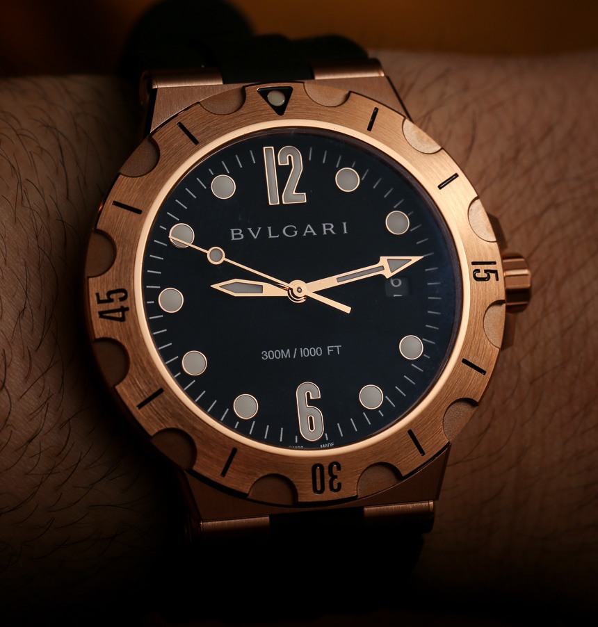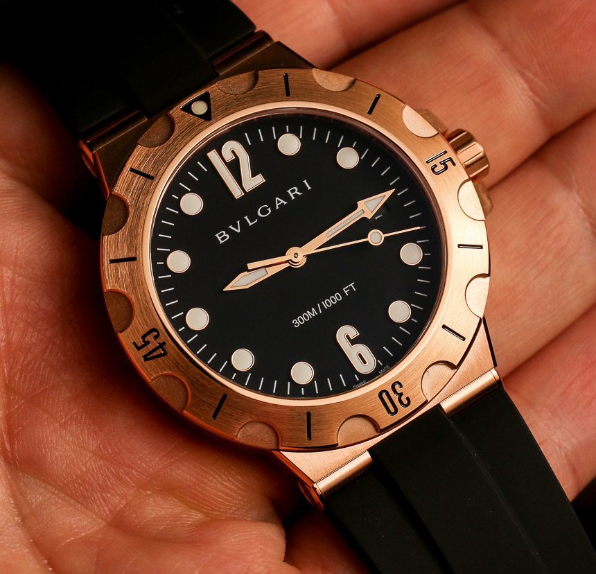 2015 年 Bulgari Diagono Scuba 手表系列的頂峰是橡膠表帶和黑色表盤上的全 18k 玫瑰金型號。橡膠(或橡膠風格)純金運動手表的整個概念——當然,我說的也是2015 年新款勞力士游艇名仕型黃金和陶瓷手表) 背帶并不少見,但有些人并不總是喜歡它。運動但顯然是奢侈品?意味著要挨打,但又要被寵愛?黃金運動手表的概念存在太多內在沖突,可能會導致認知失調。誰選擇了這些手表,為什么?我想歸根結底,金運動手表是那些“F-you”的物品之一,它說,“我當然不需要金運動手表,我當然不應該將它用于運動目的……但我是,因為我可以。”?所以戴金運動表的態度才是真正毀掉金運動表的。它只是并不總是表明您的朋友和家人可以支持并一直為之自豪的行為類型。同時,