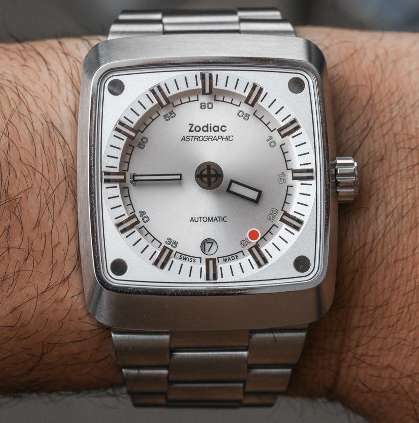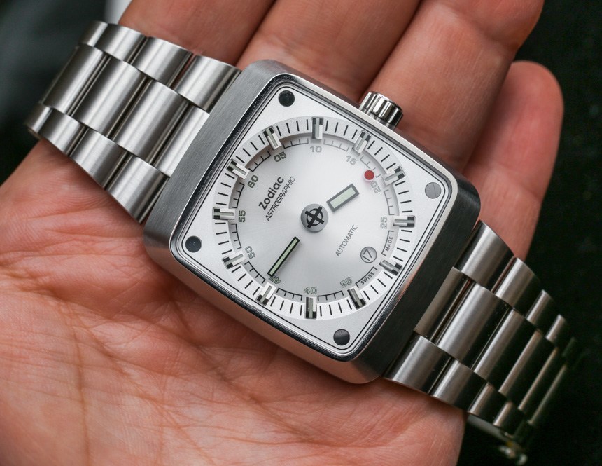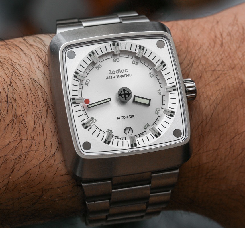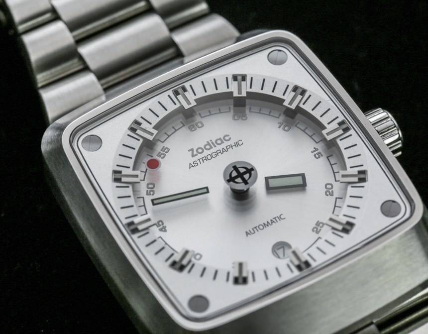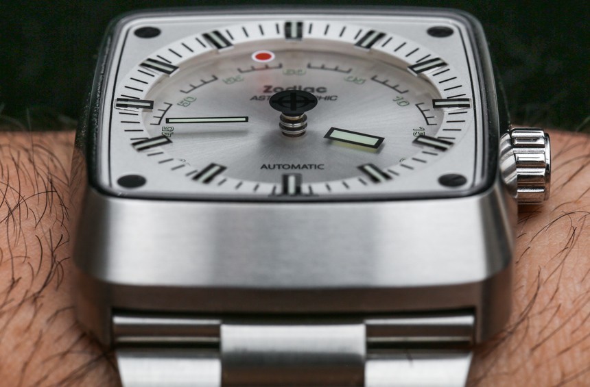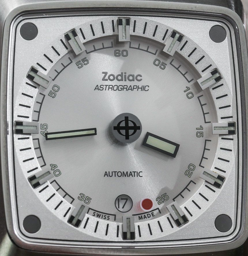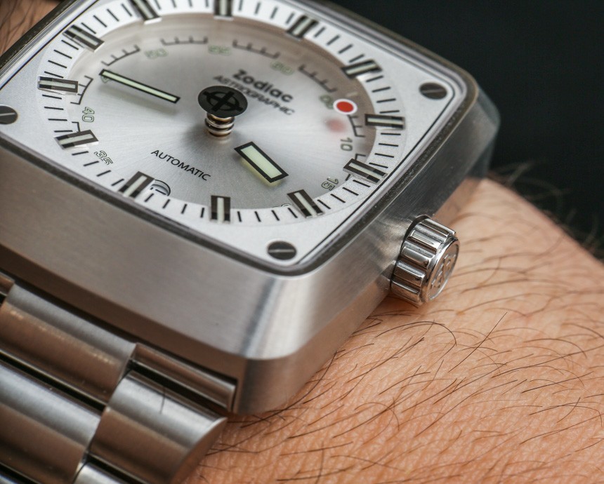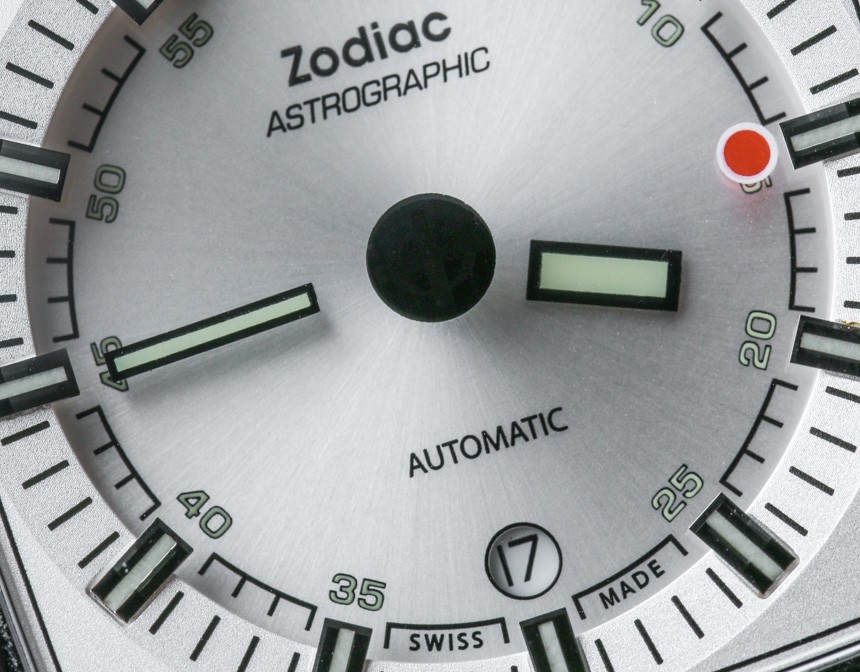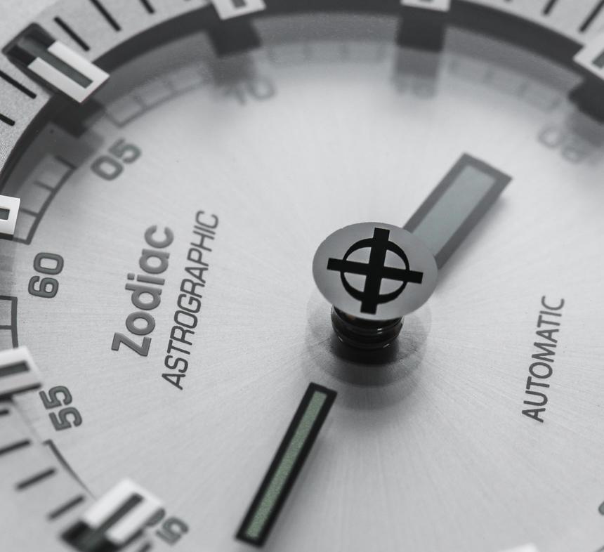 即使指針漂浮在空中,時針和分針以及涂有夜光體的時標(biāo)仍然清晰易讀。這意味著在黑暗中具有良好的易讀性。我認(rèn)為 Zodiac Astrographic 表盤的巧妙之處在于提供了一個明顯是“神秘表盤”的獨(dú)特設(shè)計,但提供了人們對日常佩戴的運(yùn)動型手表所期望的可讀性。Zodiac Astrographic 的各種表盤版本中的每一個都會稍微改變指針和面部的顏色。我發(fā)現(xiàn)他們都很容易相處,但喜歡這個特別的 Zodiac Astrographic ref。ZO6601 銀色表盤與表殼相得益彰。