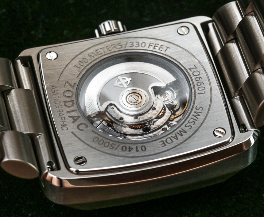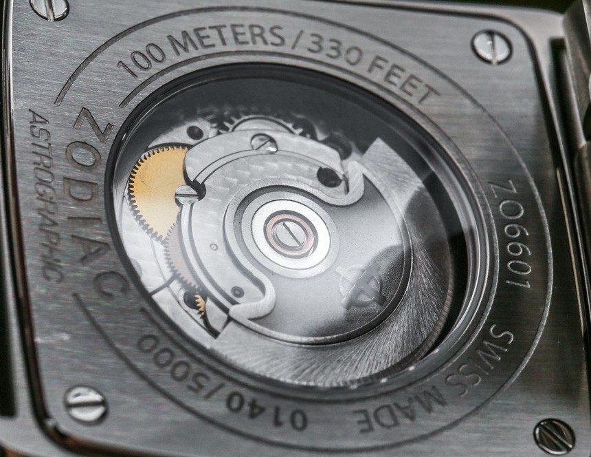 該表殼防水深度達(dá) 100 米,還配有展覽底蓋,可以看到內(nèi)部的自動機(jī)械機(jī)芯。該機(jī)芯實(shí)際上是由 Fossil 集團(tuán)生產(chǎn)的,該集團(tuán)在瑞士擁有一家機(jī)芯制造廠。該機(jī)芯被指定為 Swiss Made STP 1-11,我相信它在功能上等同于 ETA 2824,在 4Hz 下具有約 42 小時的動力儲存。為了錢,我對機(jī)芯裝飾的質(zhì)量印象更加深刻,其中包括漂亮的機(jī)加工珍珠拋光。正如我所說,對于 Zodiac Astrographic 的超值價格,這是一款非常合適的自動機(jī)芯,我認(rèn)為 Zodiac 做出了正確的決定,讓您從表殼后部查看它。