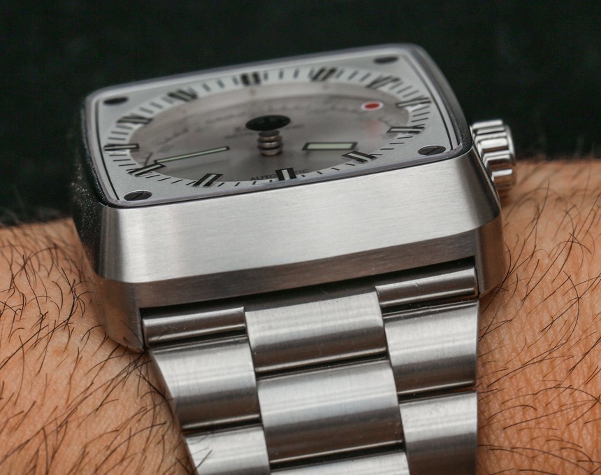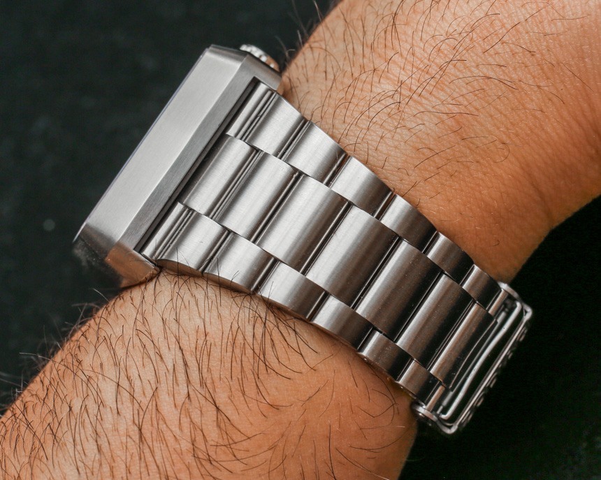 戴在手腕上,十二生肖星象表不是小表,而是佩戴舒適。“垂直電視屏幕”樣式的外殼寬 39 毫米,高 45 毫米。表殼也有 12 毫米厚——但視覺上看起來更厚一些。鋼制表殼和表鏈也很有分量——由厚鋼鏈制成。我一直是錐形手鐲的粉絲,我贊賞 Zodiac 保留了 Zodiac Astrographic 風(fēng)格的這一重要元素——這也有助于佩戴舒適。那些尋求不太保守但又讓人一眼就熟悉的設(shè)計的人會喜歡 Zodiac Astrographic,其核心主題和概念出奇地經(jīng)久不衰。