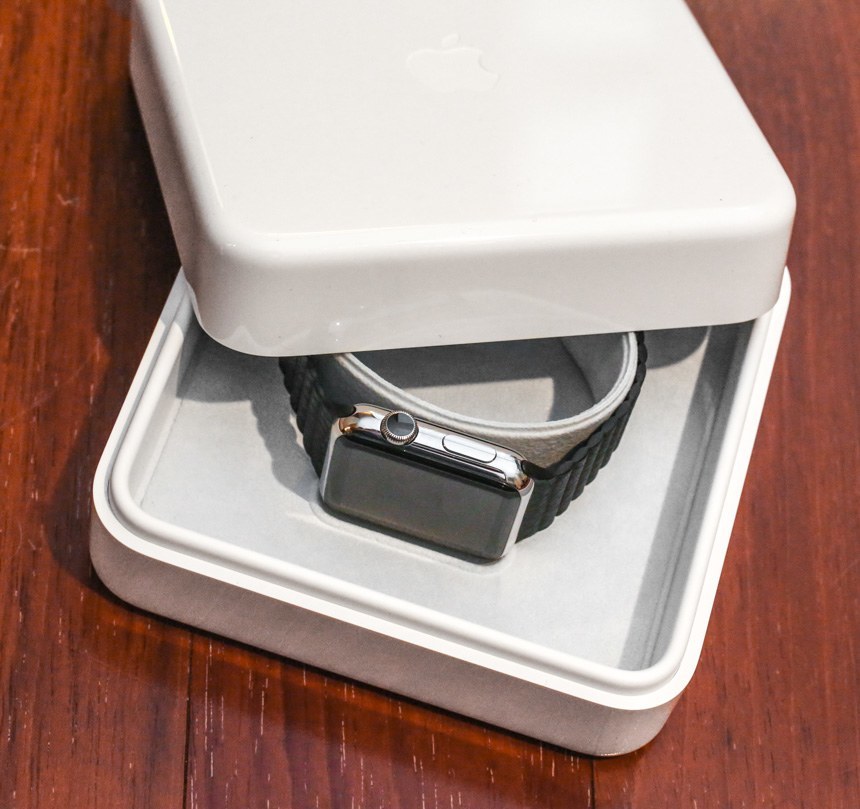 任何熟悉購(gòu)買(mǎi)手表的人都會(huì)立即認(rèn)出 Apple Watch 盒子看起來(lái)非常像傳統(tǒng)的手表盒子。Apple 并不注重節(jié)省空間,而是注重使用不會(huì)被丟棄的包裝材料提供真正的“優(yōu)質(zhì)”體驗(yàn)。擁有 Apple 筆記本電腦的人會(huì)發(fā)現(xiàn)盒子的形狀很熟悉,因?yàn)樗c Apple 為其 MacBook Air 和 MacBook Pro 筆記本電腦附帶的充電器非常相似。Apple Watch 包裝盒包含一個(gè)可用作儲(chǔ)物盒或旅行箱的塑料內(nèi)盒、一個(gè)小袋子(當(dāng)您調(diào)整鋼表鏈尺寸時(shí)可放置額外的鏈節(jié))、一塊超細(xì)纖維清潔布和充電線(xiàn)。