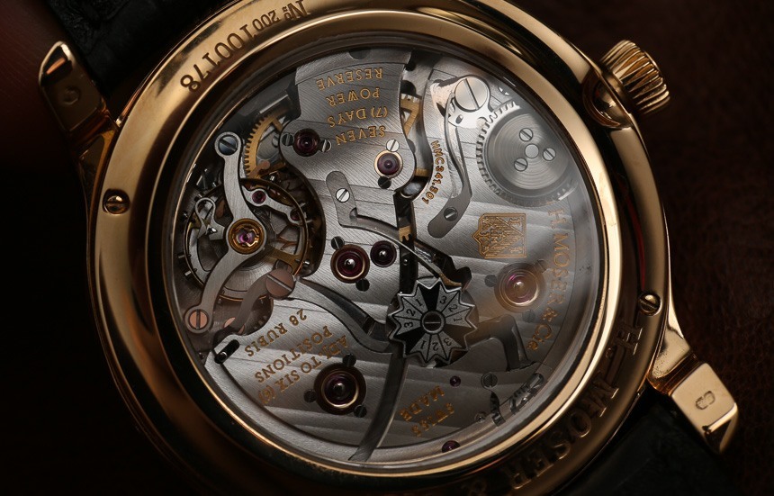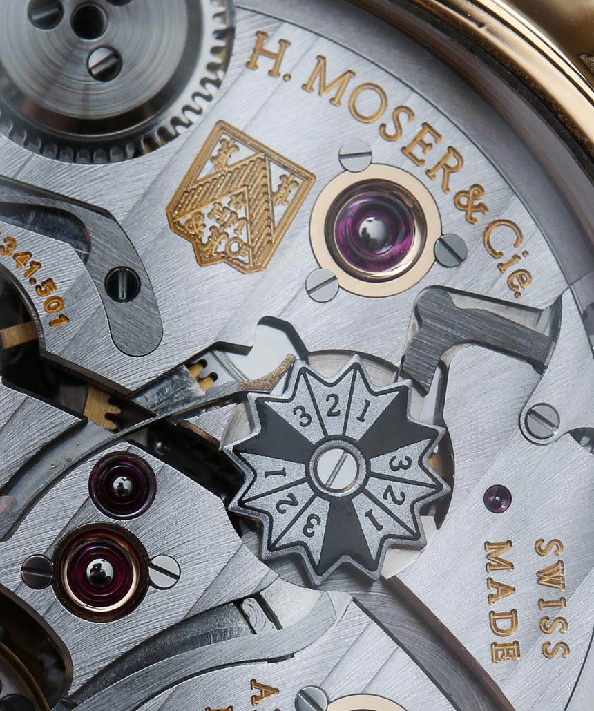 例如,Chopard 為其Quattro 系統(tǒng)使用四個(gè)發(fā)條盒(2 x 2 對發(fā)條盒)以獲得八天的動(dòng)力儲(chǔ)存,而Hublot LaFerrari的 50 天動(dòng)力儲(chǔ)存來自 11 個(gè)堆疊的發(fā)條盒。H. Moser & Cie 采用雙發(fā)條盒成對發(fā)條和穩(wěn)定工作頻率為 18,000 bph 的機(jī)芯,提供 7 天的動(dòng)力儲(chǔ)存。與大多數(shù)“標(biāo)準(zhǔn)”機(jī)械機(jī)芯的 28,800 bph(每小時(shí)節(jié)拍)相比,這是一個(gè)“更慢”的機(jī)芯,但我發(fā)現(xiàn) H. Moser & Cie Endeavor Perpetual Calendar 非常準(zhǔn)確。H. Moser & Cie 甚至在調(diào)節(jié)系統(tǒng)中使用帶有 Breguet 超線圈的奇特的“原裝 Straumann 游絲”,以進(jìn)一步保持時(shí)間的準(zhǔn)確性。