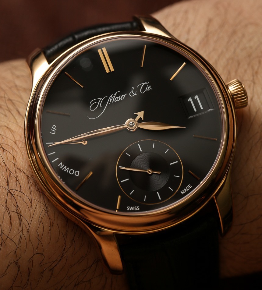 戴在手腕上的H. Moser & Cie. Endeavour Perpetual Calendar腕表寬40.8毫米,厚11.1毫米。對我來說,這是一個(gè)非常好的正裝手表尺寸,我發(fā)現(xiàn)即使穿短袖也很舒服(我很少穿長袖)。我提到這個(gè)是因?yàn)楹芏鄷r(shí)候,如果你不穿長袖,較小的手表看起來非常嬌小。出于這個(gè)原因,在商業(yè)環(huán)境更多的寒冷城市,人們佩戴較小的手表來搭配長袖,而在洛杉磯和邁阿密等更溫暖的地方,更多的是“休閑文化”,你大多穿短袖,人們佩戴較大的手表.