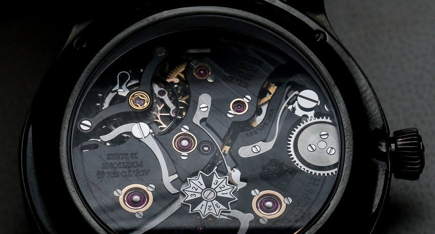 HMC 341 的精加工非常好,我喜歡細(xì)節(jié),例如大尺寸合成紅寶石周圍的金套筒。從表殼后部看到的機(jī)芯表面也是萬年歷復(fù)雜功能的閏年指示器所在的位置。我特別喜歡這種放置選擇,因?yàn)檫@是萬年歷的必要元素,但不是您需要定期查看的東西。事實(shí)上,大多數(shù)其他萬年歷手表都竭盡全力“隱藏”閏年指示器,以免影響整體設(shè)計(jì)。將這個(gè)指示器放在表背上,只是H. Moser & Cie.設(shè)計(jì)感十足的眾多小物件之一。