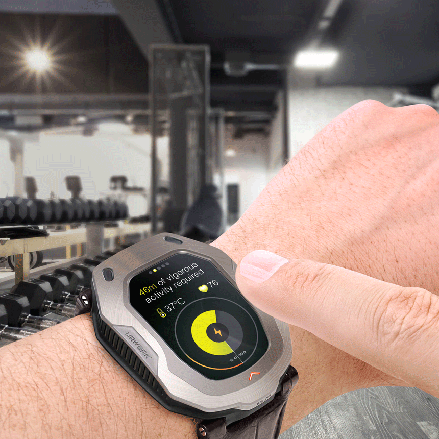 “先生,我的電池電量為 23%,我們今天沒有完成您的鍛煉目標(biāo)。我可以推薦 46 分鐘的劇烈運(yùn)動(dòng)嗎?” 通過利用佩戴者定期鍛煉的需要,Urwerk HIS 手表可以通過提醒佩戴者該運(yùn)動(dòng)了來滿足兩個(gè)目標(biāo)——健身和電池充電。鍛煉會(huì)產(chǎn)生熱量和運(yùn)動(dòng),通過達(dá)到一個(gè)人的健身目標(biāo),Urwerk HIS 手表可能會(huì)持續(xù)數(shù)周而無需使用外部方式充電。Urwerk HIS 還可以就其需要多少能量提出智能建議。對(duì)于輕度充電,它可能會(huì)建議以快走的形式進(jìn)行鍛煉。在電池壽命低得多的情況下,它可以通過說“先生,您對(duì)跑步感到無聊。試試網(wǎng)球。