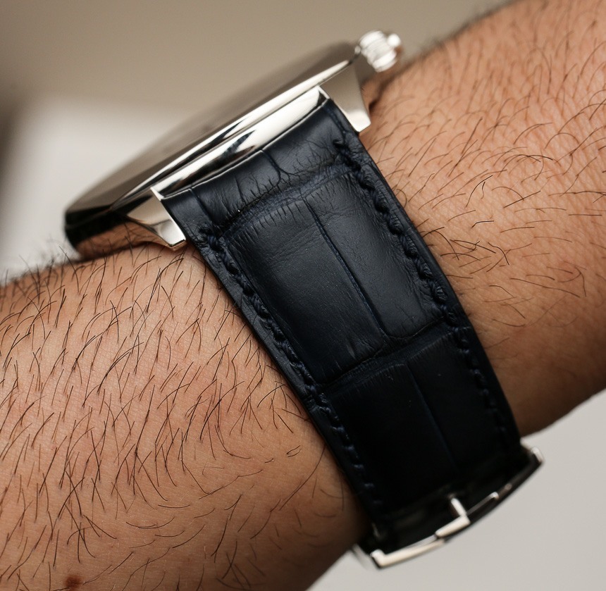 在手腕上,江詩丹頓 Harmony 超薄超薄超復雜功能計時碼表看起來特別好——即使您不是傳統的墊形手表的粉絲。42 毫米寬的表殼佩戴起來又大又漂亮,表耳到表耳的長度為 52 毫米。當然,與江詩丹頓 Harmony 超薄 Grande Complication 計時碼表相比,其他 Harmony 系列表款的尺寸略小。我不會說它是一款“休閑”手表,但它在手腕上確實具有運動感和大膽,使其脫離了純粹的正裝手表領域。Harmony 可能會從一個更好的名字中獲益,但它是一個令人驚訝的令人印象深刻的新系列,我認為它有能力將那些通常不屬于江詩丹頓的人帶入該品牌。
