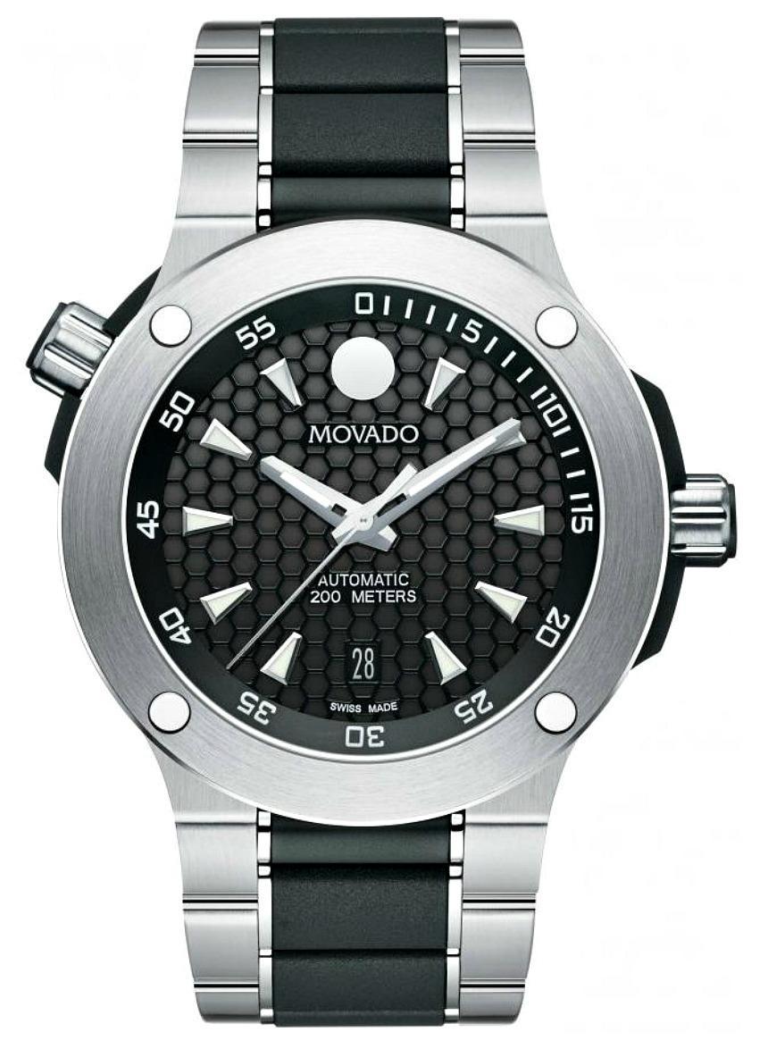 Movado SE Extreme Automatic 200 Diver 內部裝有 ETA 2829-2 自動機芯。也許 200 米和 300 米防水的原因之一是它有一個藍寶石水晶顯示底蓋。手鐲是鋼制的,帶有聚氨酯中心鏈節(jié)。希望這不會給人一種廉價的感覺。