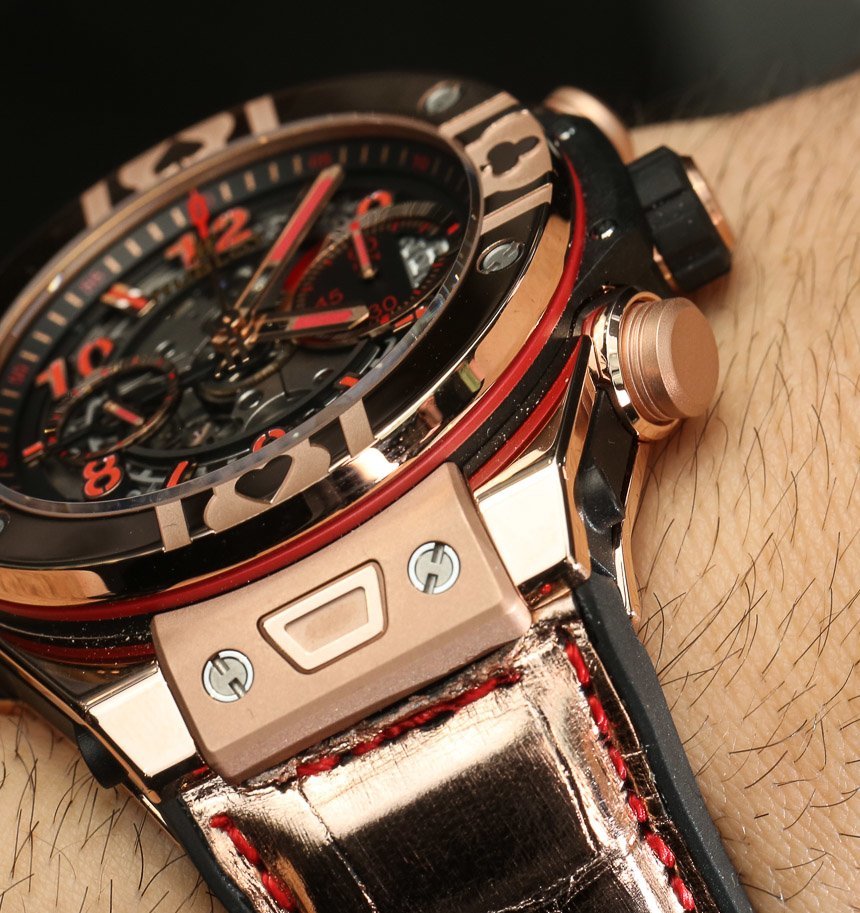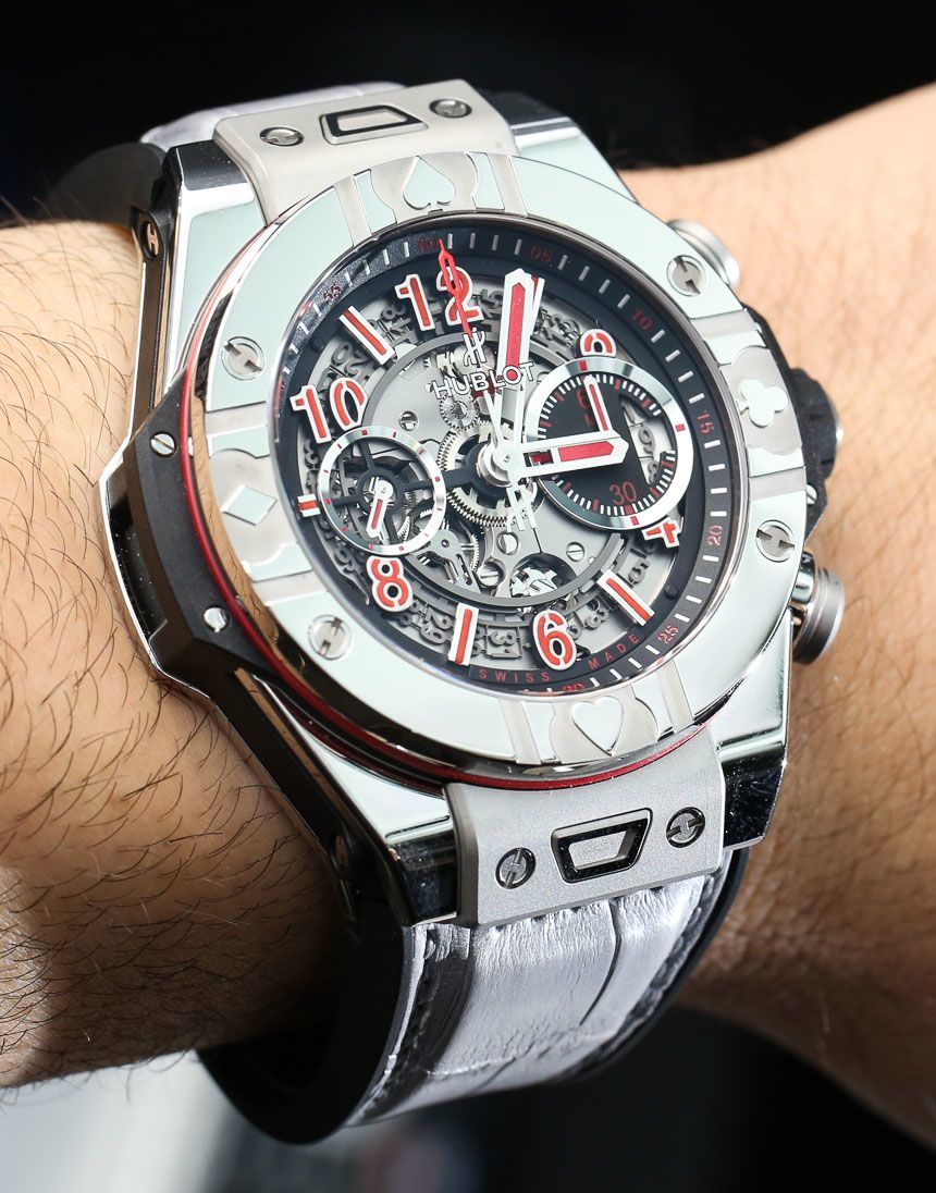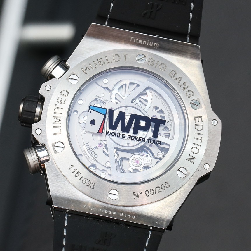 Hublot Big Bang Unico 世界撲克巡回賽的防水深度為 100 米,您甚至可以在其中游泳。我只是在想在玩了很多撲克之后在拉斯維加斯狂野的夜晚可以進行的所有活動。撲克玩家以失去對金錢價值的把握而聞名——因此拉斯維加斯的服務(wù)提供商喜歡他們是大手筆的小費和大手筆的人。因此,考慮到他們中的一些人將與可能考慮購買的 Hublot 進行冒險,這并非不可能。