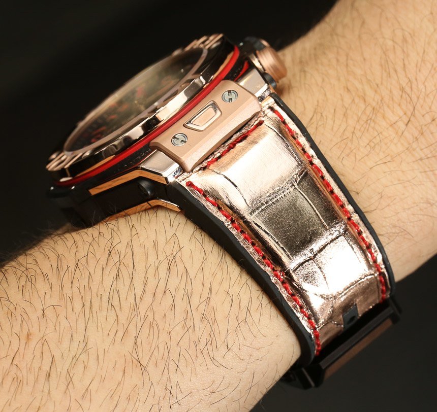 我覺得我需要穿一件閃亮的西裝外套才能真正拉動這只手表。除了拉斯維加斯的表演者,誰能穿上這些?幸好 Hublot Big Bang Unico 設(shè)計有快速釋放表帶,可以更換一些更端莊的東西。盡管如此,我相信很多購買其中一款手表的人都會從所示的銀色或金色表帶中獲得很好的里程數(shù)。Hublot 實際上為每款 Hublot Big Bang Unico 世界撲克巡回賽手表提供了三種表帶選擇——每個版本還包括黑色和紅色表帶。