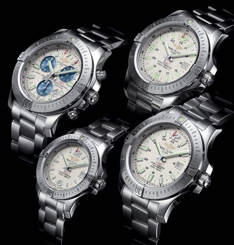 百年靈為每款全新百年靈柯爾特系列腕表提供三種表盤顏色,包括火山黑、水手藍和層云銀。百年靈柯爾特計時碼表等版本在計時碼表子表盤中混合了這些顏色。黑色表盤的 Breitling Colt 手表可能會再次成為最受消費者歡迎的版本,但藍色和銀白色表盤也不容忽視。