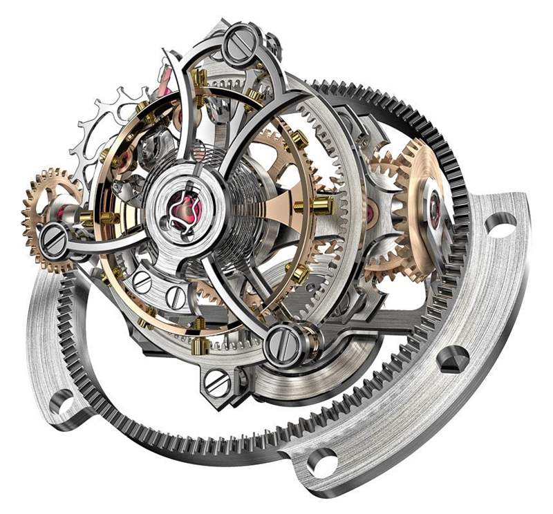 提供多軸旋轉點的目的是什么?好吧,除了藝術和機械價值之外,真的沒有。事實證明,陀飛輪機構——最初設計用于幫助懷表更加準確——并沒有真正為腕表增加太多。我們經(jīng)常看到陀飛輪,因為它們具有裝飾價值和復雜性。陀飛輪不僅設計難,組裝起來也難。這么小的地方,簡直就是這么多零件。