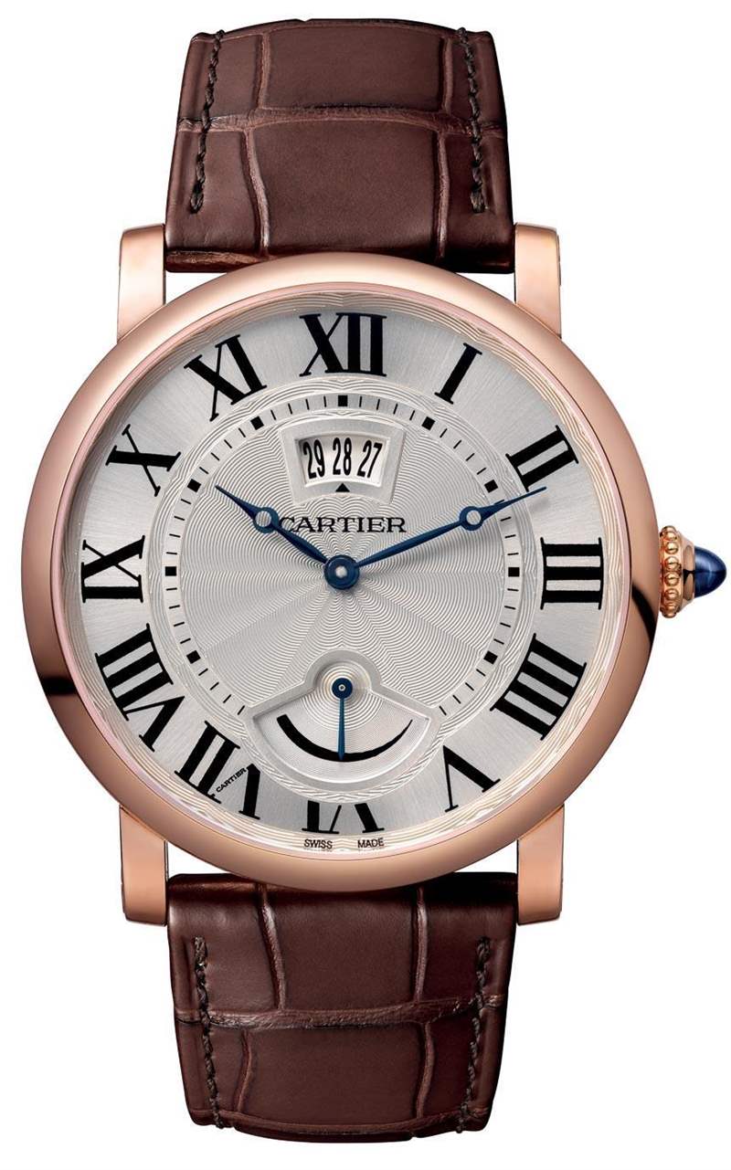 另一款卡地亞 Rotonde Small Complication 型號是 Rotonde de Cartier Power Reserve – Aperture Calendar 腕表。該模型套裝采用較小的 40 毫米寬表殼,還提供 18k 白金、18k 玫瑰金和精鋼款式。這些 Cartier Rotonde Small Complication 手表具有更多不對稱表盤,帶有動力儲存指示器以及“開放式”日期窗口。我認為卡地亞 (Cartier) 只包含一個大日期而不是擴展的“光圈日歷”日期窗口可能會更好。整體設計非常吸引人,但鐘表愛好者往往不同意這種開放式日期窗口款式的吸引力。