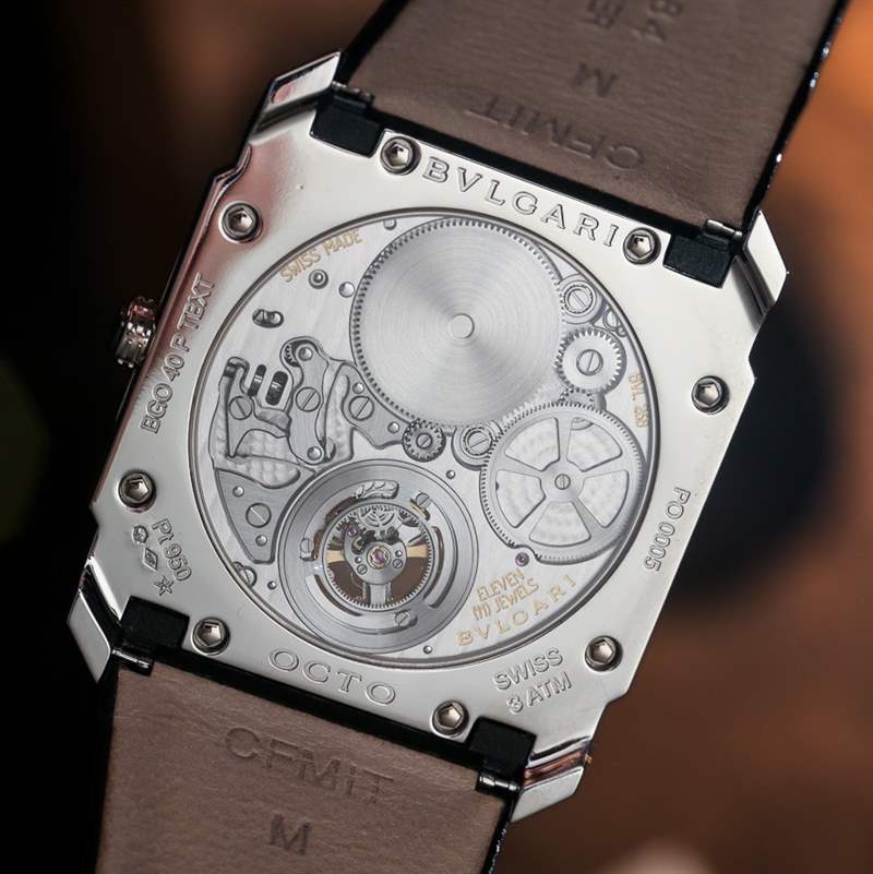 UTTE 的機芯厚度為 2.97 毫米,而寶格麗機芯的厚度僅為 1.95 毫米。此外,UTTE 表殼厚度為 8.34 毫米,而據(jù)稱 Octo Finissimo Tourbillon 表殼厚度僅為 5 毫米。它確實感覺像是手腕上的晶圓,而表帶感覺比表殼厚。如此纖薄的機芯令人印象深刻。它由 249 個零件組成,以 3 赫茲的頻率運行,并具有約 55 小時的動力儲存。使機芯如此薄的主要方法之一是在許多傳統(tǒng)上可能使用其他類型組件的地方使用滾珠軸承。