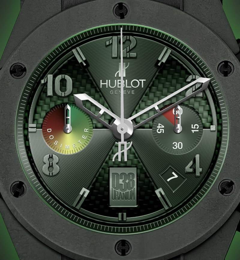 作為限量版,Hublot 推出了 Big Bang Atomic D-38,這是第一款由放射性物質鈾制成的腕表。根據 Hublot 的說法,該公司希望生產一些其他人沒有做過或不會做的東西。他們的愿望是展示 Hublot 客戶對品牌所期望的冒險精神。毫不猶豫地,決定使用該品牌擁有的秘密資源。