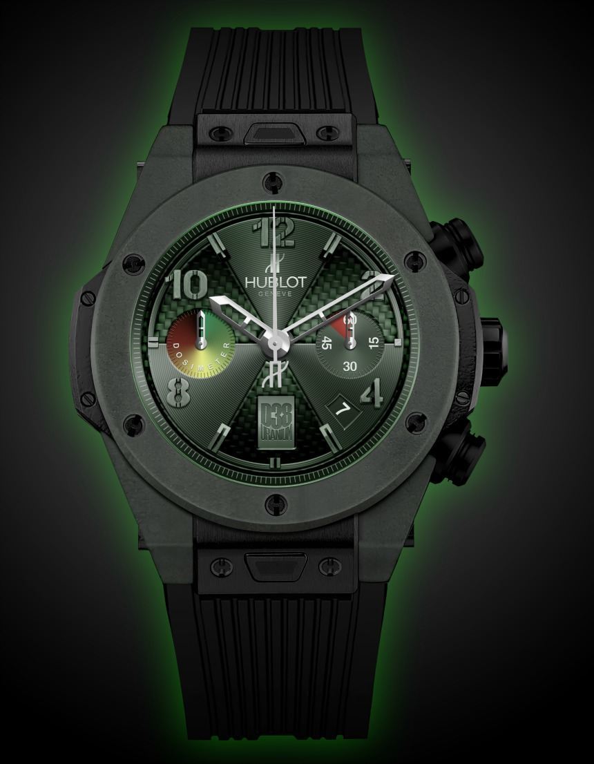 Hublot 決定將 Atomic D-38 基于其新的 45 毫米寬更新 Big Bang 表殼,并開發一種特別適合手表放射性特性的獨特復雜功能。Hublot 理解,甚至建議訂購 Atomic D-38 的顧客不要一直佩戴它。事實上,就像陳年烈酒一樣,一次只能喝少量。當 Big Bang Atomic D-38 腕表不使用時,宇舶表提供了一個鉛質展示盒,用于存放未佩戴的腕表,以保護兒童和動物的生命安全。