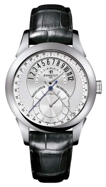 Perrelet的人們再次參與其中,跳著復雜的夾具。這款新的Perrelet調節器逆跳手表以一種(據我所知)以前從未做過的方式混合了一些復雜功能。您有一個逆跳小時顯示,小時、分鐘和秒之間的調節器風格分離(占據主表盤),以及外圍風格的日期顯示。元素的平衡非常好。此外,世界上可能有一個(或兩個)人一直夢想著一款將所有這些復雜功能結合在一起的手表。