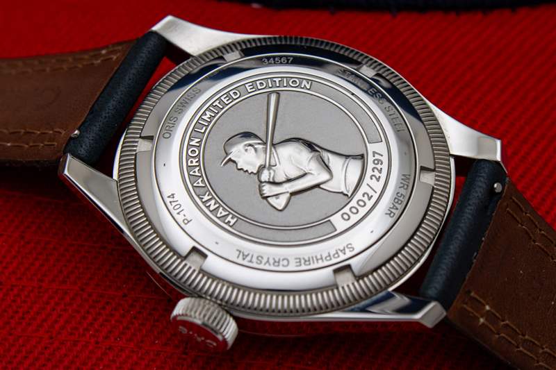 Oris Hank Aaron 限量版成功的關鍵始于其輕盈的觸感。在機械方面,這與標準生產的豪利時大表冠指針式日期腕表或多或少相同,這種相似性始于 40 毫米寬的不銹鋼表殼。長而逐漸變細的未倒角表耳、纖細的拋光表殼輪廓以及獨特的窄硬幣邊緣表圈都是大表冠指針日期的標志,在這里以精致的時尚呈現。這種設計融合了運動精神和古典精致之間的界限,拋光表圈的裝飾性外觀在手腕上營造出一種隱約的飛行員風格感覺。簡而言之,它是一款易于佩戴的表殼,適合各種環境和各種手腕,該品牌的限量版調整并沒有改變這一點。這些調整僅限于表背,Oris 在此增加了光滑、精美拋光的“Hammerin”漢克·阿倫本人在其獨特的橫握揮桿中的雕刻。與標準大表冠指針式日期腕表一樣,豪利時對 Hank Aaron 限量版腕表的防水深度為 50 米。廣告留言廣告信息結束