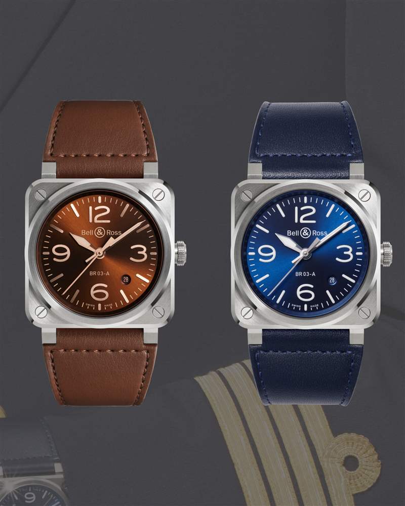新表款中有許多熟悉的面孔:帶有白色標記的黑色表盤、該品牌美麗的旭日藍,以及一些不太為人所知的表盤,例如全黑幻影、玫瑰金棕配色的Golden?Heritage?,以及黑底棕褐色的 Heritage。但該品牌利用這個機會推出了 BR 03 系列的兩款新型號。第一個是黑色陶瓷表殼中非常有策略性的橄欖色表盤,該品牌將其稱為“軍事”。它有黑色標記和指針,以及與表盤協(xié)調(diào)的橡膠表帶;這一張在渲染圖和新聞照片中是綠色的,但在親自觀看時可以看到淡黃色的色調(diào)。另一種新款式是銅色,其特點是垂直拉絲表盤和拋光藍色聽筒。