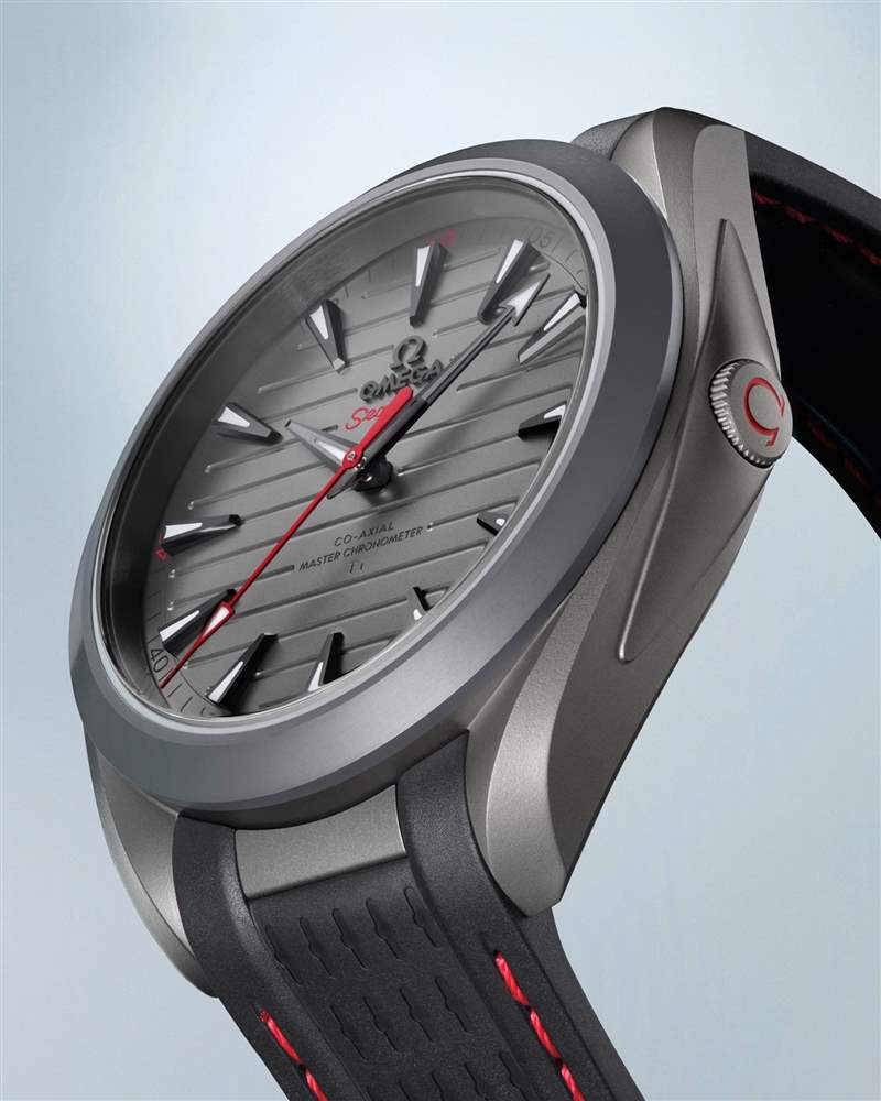 追求極致的輕盈舒適,那么41毫米的?Ultra Light 超輕款是絕無僅有的選擇。該表采用伽馬鈦合金制作而成,伽馬鈦合金是航空業廣泛應用的一種堅固而輕便的材質,將其運用到制表業中可謂歐米茄的一大創舉。為了佩戴者更加舒適,不戴表時可將伸縮式表冠推入表殼內,以避免其壓迫到手腕皮膚。經過噴砂處理的5級鈦金屬表盤飾有條紋,令人聯想到高爾夫球桿桿頭的條紋。黑色橡膠表帶的設計,靈感源自高爾夫球桿握柄。其鋁質秒針、Seamaster 標識、刻鐘刻度以及表帶縫線上大膽運用藍色裝飾元素,穩重之余也非常運動。