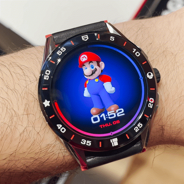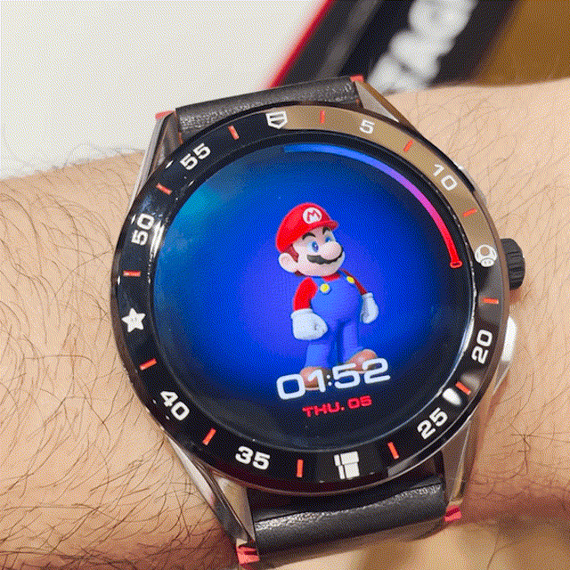 限量版的第二部分實際上不會那么有限——我認為這是新聞中最好的部分。泰格豪雅與任天堂合作,為基本的 Google Wear OS 操作系統開發特殊軟件,其中包括一系列以超級馬里奧為主題的特殊動畫。值得注意的是,動畫連接到健身追蹤系統。當用戶達到他們選擇的每日健身目標的 25%、50%、75% 和 100% 時,他們會看到以超級馬里奧為主題的成就動畫。這很有趣,它與智能手表幾年來一直在實現的健身游戲化直接相關。廣告訊息廣告信息結束