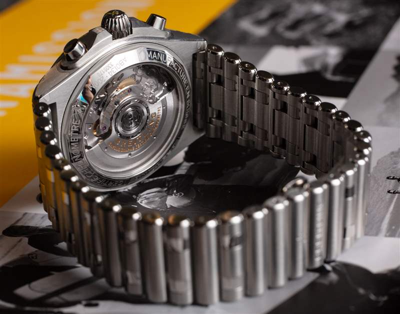 考慮到多樣性,百年靈將 Chronomat B01 42 設計為可提供數十種年份的版本。只需更換顏色和材料,帶有計時碼表機芯的 Chronomat B01 42 表殼就可以以多種有趣的方式呈現。我碰巧喜歡那些帶有對比鮮明的小表盤的表盤,而現在,我碰巧更喜歡全鋼表。機芯并不新鮮,但百年靈自制的 B01 自動計時碼表表現出色,并且表現良好。它的執行力看起來仍然很棒,雖然在任何方面都不是行業領先的,但它是一個穩定的 4Hz 頻率運動,具有約 70 小時的動力儲備。您可以通過手表背面的藍寶石水晶視窗查看機芯。