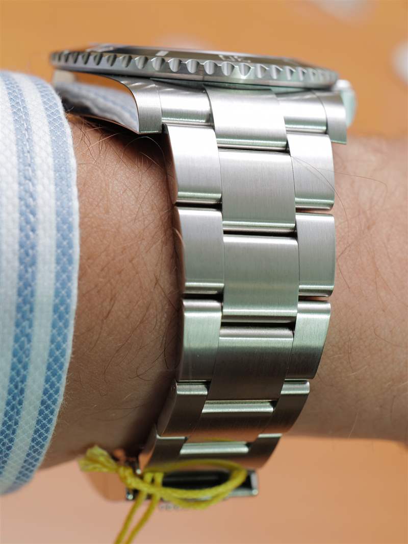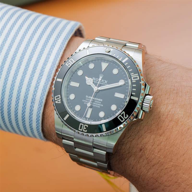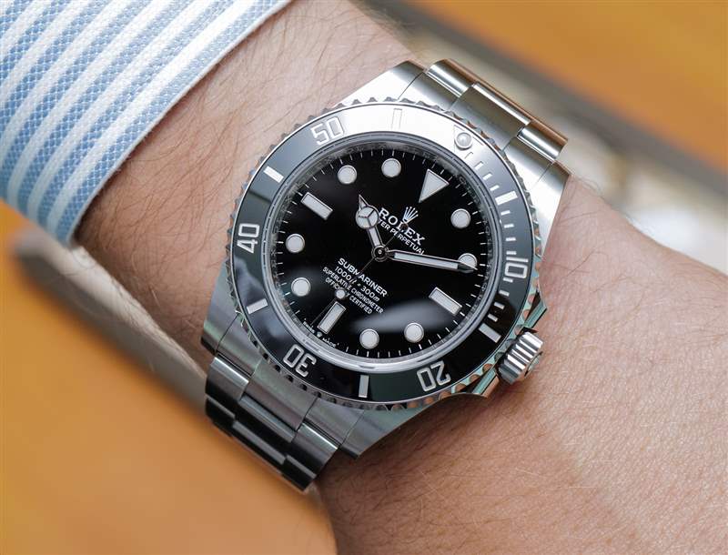 與勞力士 Submariner 手表“頭”一樣漂亮的是手鐲。與 No Date Submariner 的其他產(chǎn)品一樣,該表鏈經(jīng)過重新設計,盡管它在風格上與之前的三鏈 Oyster 表鏈(市場上最好的金屬表鏈之一)或多或少相同。手鏈仍然具有蠔式折疊安全扣和出色的尺寸微調(diào)勞力士 Glidelock 功能。在我看來,更新后的 Submariner 表鏈最大的新聞是鏈節(jié)緊密結(jié)合在一起 – 使外觀更加“無間隙”,更具高端感,與當前高人氣的“鋼表鏈表”相得益彰。
