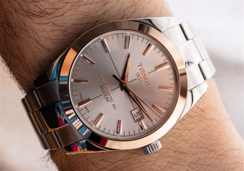 在產品組合中添加黃金很有趣,而且情緒激動。有很多像這樣的手表,其金色表圈采用 PVD ??涂層或鍍金制成。這款 Tissot Gentleman Automatic T-Gold 采用真正的 18k 玫瑰金,使產品與眾不同。它牢牢地將其置于奢侈品類別中——至少可以說,這一切的價格都是罕見的。這只表的功勞不僅僅是“這里有一些真正的黃金”。