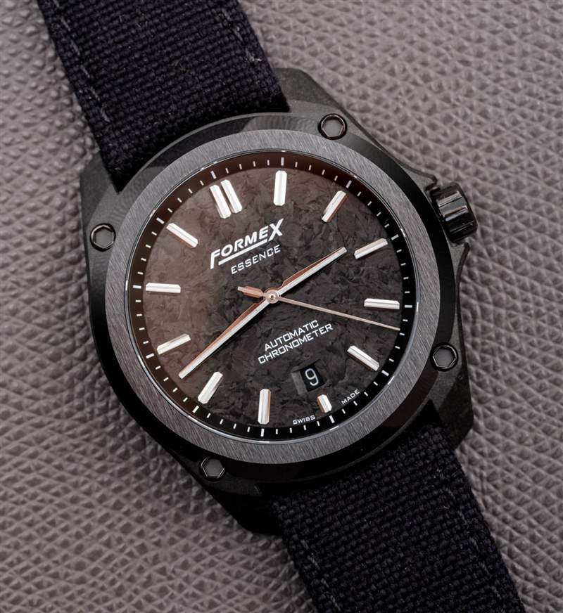 Essence 手表系列是 Swiss Formex的重要突破性產(chǎn)品,因?yàn)樗鼘⑵放坪诵?DNA 中值得注意的元素與多功能和現(xiàn)代運(yùn)動(dòng)手表體驗(yàn)相結(jié)合,這種體驗(yàn)足夠保守,足以吸引主流。Essence 等產(chǎn)品幫助 Formex 等公司(以及其他成功發(fā)布類似產(chǎn)品的公司)走出“微型品牌”的世界,進(jìn)入精品制表商的領(lǐng)域,這在知名度和聲望上都有所提高。今天,我來看看 Essence 的進(jìn)一步發(fā)展,它是鍛造的碳外殼 Formex Essence Leggera(參考 0330.4.6399.811)。