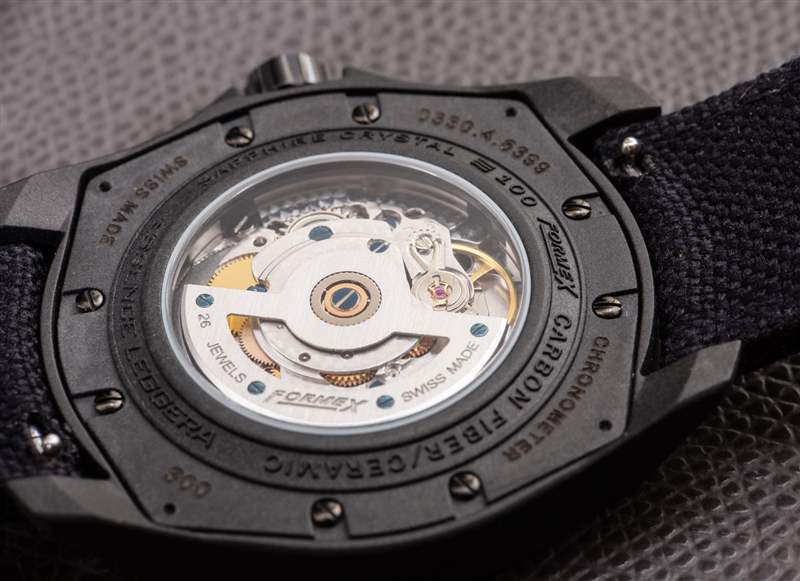 添加到輕質(zhì)碳主題的是表帶展開,它也是碳。公平地說,F(xiàn)ormex 一直在其他一些手表中使用這些碳成分。也就是說,部署者現(xiàn)在似乎具有一個(gè)方便的微調(diào)系統(tǒng),該系統(tǒng)在功能方面是謹(jǐn)慎且值得贊賞的。Formex 提供了一些表帶選項(xiàng),包括黑色意大利小牛皮、黑色橡膠或黑色尼龍織物材料。在我看來,橡膠和皮革表帶是最舒適的。Formex 的所有表帶部件都與免工具拆卸系統(tǒng)相連,因此更換表帶一點(diǎn)也不難。我也喜歡表帶末端的設(shè)計(jì)適合表殼的形狀。