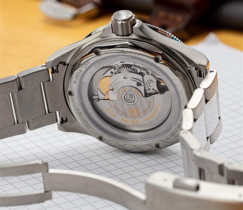 20 毫米寬的手鏈有一個制作精良的折疊展開式表扣,考慮到半連桿的存在,以及展開式本身的較小孔,它有很多調節選項。這是上一代技術,但它仍然可以正常工作。然而,我確實對沖壓金屬潛水員的延長扣有點問題,它感覺不像手表的其他部分那么堅固。我真的不覺得這是一個問題(特別是因為這款手表的一兩個所有者可能會真正使用它),但在這個價格水平上,我認為手表上不應該有任何明顯的金屬部件表殼或手鏈。