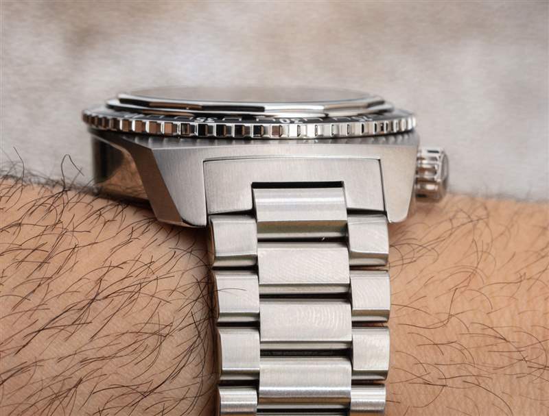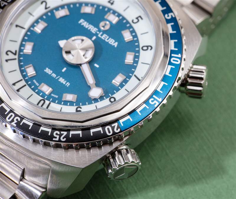 表殼有兩個表冠,這是我通常不太喜歡的外觀,但在這里并沒有打擾我,有趣的是。不過,您只會使用一頂王冠。上表冠實際上是一個手動排氦閥——它比自動排氦閥的用處要小一些,自動排氦閥本身對一小部分佩戴潛水表的人有用,并且是需要的特殊類型的軍事或商業(yè)潛水員在減壓室里閑逛。與 Favre-Leuba Raider Harpoon 共享此功能的最著名的手表是 Omega Seamaster 300M(它也有一個“殘留的”手動氦氣釋放閥)。為什么會在那里?風(fēng)格,對于一個人來說——這是可以談?wù)摰?。在許多鐘表愛好者圈子中,講故事通常比手表中的實用功能更有價值。