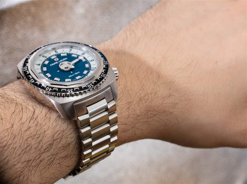 早在 2017 年,我使用 Swiss Favre-Leuba Raider Harpoon 評測了目前市場上最有趣的潛水風(fēng)格手表之一(aBlogtoWatch 評測在這里)。與該品牌的其他潛水表在視覺上相似,F(xiàn)avre-Leuba?Raider Harpoon 在指示時間方面與眾不同。報時系統(tǒng)可能應(yīng)該有一個吸引人的名字來解釋它是如何工作的,但我會為你描述它的操作。從本質(zhì)上講,它完全去除了時針并用圓盤代替了它。圓盤在表盤周圍移動,但需要分針準(zhǔn)確識別時間。