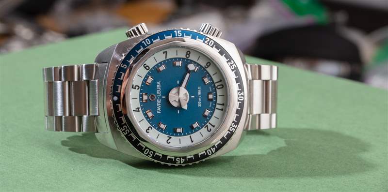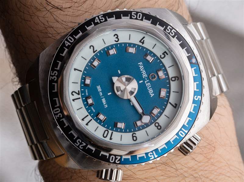 要了解手表的整體設(shè)計,檢查 1970 年代左右的老式 Favre-Leuba 手表的外觀很有用。今天的 Favre-Leuba 品牌將許多老式運動手表品牌的有趣怪癖引入了今天的現(xiàn)代手表。這種風(fēng)格并不適合所有人,但我碰巧很喜歡它,老實說,它會隨著你的成長而成長。從表殼的整體形狀到表圈的設(shè)計,當(dāng)然還有有趣的表盤,這里有很多值得喜歡的地方。單向旋轉(zhuǎn)潛水員風(fēng)格計時表圈是整體設(shè)計中更具 1970 年代風(fēng)格的元素之一,并印在鋁制表圈插件上。當(dāng)然,我更喜歡陶瓷,但表圈插件實際上很窄,確實有助于給手表帶來更受歡迎的復(fù)古氛圍。