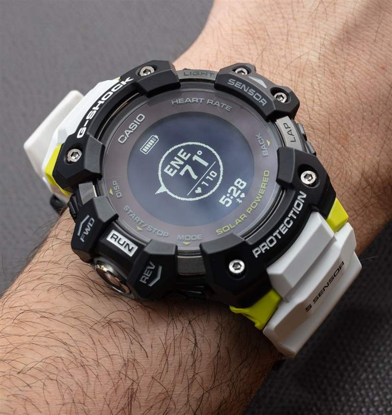 不是每個人都喜歡 GBDH1000-1A7 的黑色、白色和霓虹綠/黃色配色方案。看起來它是為搭配時尚跑鞋而設計的,但除此之外,很難將這款時計與您的日常衣櫥時尚搭配。未來還會有其他顏色可供選擇,但現在卡西歐還制作了全黑色樹脂的 G-Shock Move GBDH1000-1,外觀略顯保守。