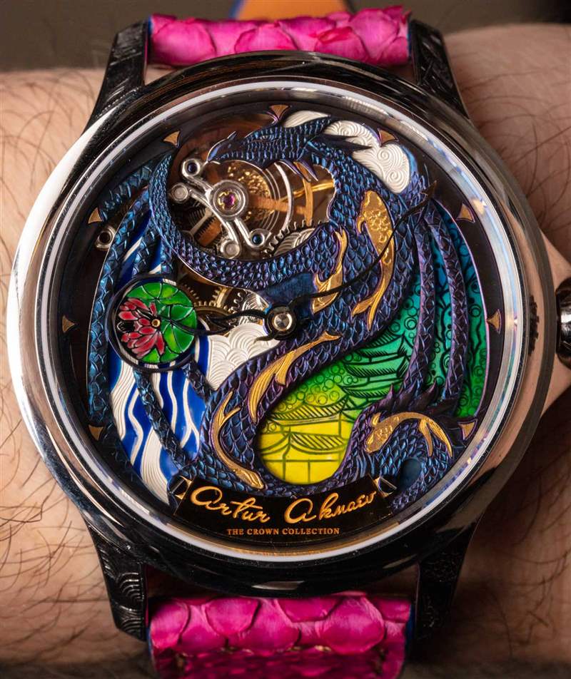 預計將 Akmaev 的作品與瑞士偉人出售的手表中的著名雕刻和琺瑯作品進行比較。這些有可比性嗎?這是個好問題。與傳統(tǒng)制表中的“老字號”經(jīng)常用于制作真正的高級奢華藝術(shù)手表的高度精致的技能相比,Akmaev 無疑是更新和業(yè)余的。Artur 更年輕,每款新手表都在學習。我個人看到他的工作在短短幾年內(nèi)有了顯著改善。訓練有素的專家將能夠查看 Artur 的雕刻并了解可以改進的地方。但問題是,在瑞士品牌的任何地方,您都無法以這樣的價格獲得這樣的定制作品。Akmaev 正在提供一種大多數(shù)手表愛好者完全無法使用的服務(wù)——不惜任何代價。憑借他的作品,鐘表愛好者可以在他們的手表上以傳統(tǒng)技術(shù)、按照他們的條件制作真正的手工藝術(shù)品,價格至少是瑞士主要奢侈品公司的 1/4 或更低。所以價值就在那里,你只需要了解如何最好地看待它。