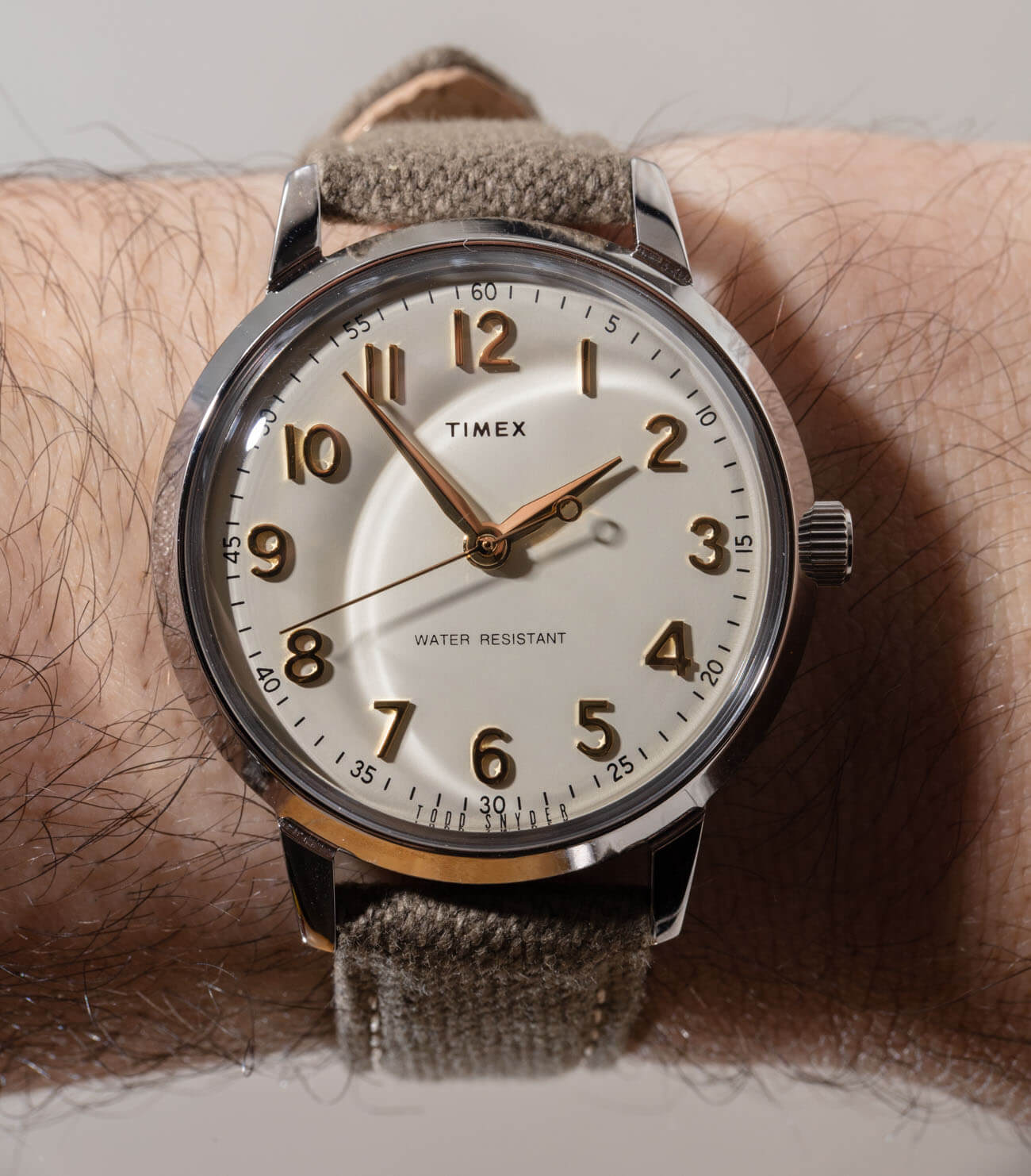aBlogtoWatch 過去曾推出過其他 Todd Snyder X Timex 手表,我們相信這次合作仍然是傳統制表師和時裝設計師之間最聰明的合作之一。我們特別喜歡的是 Snyder 能夠將當代色彩和風格趨勢注入 Timex 以實惠的價格生產出非常令人滿意的手表的能力。
