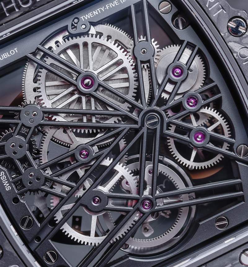 Big Bang靈魂陀飛輪42毫米碳纖維內(nèi)部的機(jī)芯是內(nèi)部制造的宇舶機(jī)芯HUB6020。手動(dòng)上鏈,動(dòng)力儲(chǔ)存 115 小時(shí)(以 3Hz 運(yùn)行),機(jī)芯包括時(shí)間、60 秒陀飛輪和表盤(pán)上的動(dòng)力儲(chǔ)存指示器。該運(yùn)動(dòng)本身在性能或力學(xué)上并不是革命性的,但主要是藝術(shù)性的。宇舶表設(shè)計(jì)其內(nèi)部陀飛輪是為了美觀,并嘗試如何設(shè)計(jì)和完成橋板和齒輪以獲得卓越的視覺(jué)效果。像這樣的時(shí)計(jì)不一定適合每個(gè)人的口味,但在查看機(jī)芯的復(fù)雜性時(shí),不可否認(rèn)宇舶的機(jī)芯設(shè)計(jì)并沒(méi)有在 HUB6020 機(jī)芯項(xiàng)目上投入大量時(shí)間和熱愛(ài).