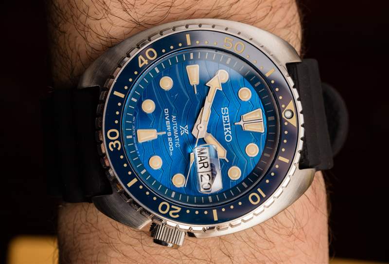 精工在全球的更大戰略是逐步提高其許多核心型號的價格,但它預計消費者不會在手表質量和款式同步提高的情況下咬牙切齒。精工吸取了重要的一課,即許多手表愛好者對裝飾工具手表情有獨鐘。我的意思是其他簡單而堅固的實用手表,充滿時尚的色彩、紋理或材料。在很多方面,這正是 Prospex Turtle SRPE05 和 SPRE07 時計的全部意義所在。它們適合日常穿著、潛水或只是遇到麻煩。也就是說,有吸引力的綠色或藍色表盤選項有助于這些潛水員更好地與更昂貴的歐洲時尚潛水員競爭,這些潛水員通常價格更高,而且表盤和表殼質量通常不高。