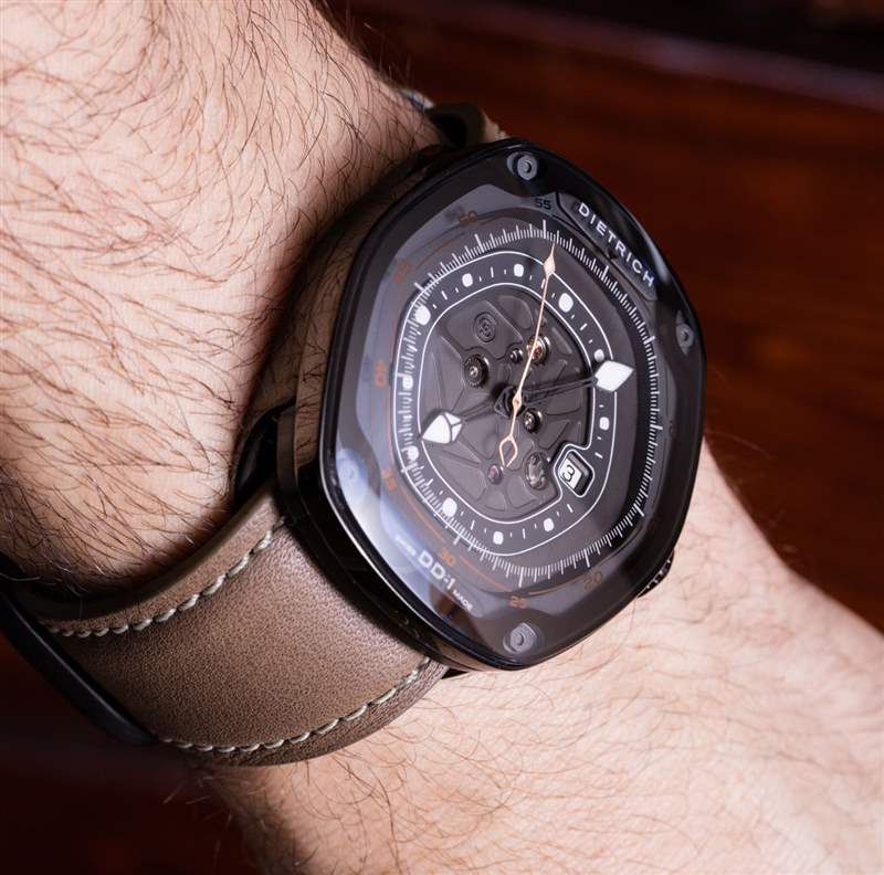 最新的瑞士制造和瑞士設計的 Dietrich 手表是 DD-1(“Dietrich Device number 1”),它是一款非常酷的時計。我之所以強調“瑞士制造”,是因為 DD-1 采用了與該品牌廣受歡迎的OT(Dietrich Organic Time)手表系列(此處為 aBlogtoWatch 評論)改編(不同)的表殼,該系列采用日本制造的 Miyota 自動機芯.?當時,OT 的設計目的是在“SevenFriday 產品空間”內競爭,這意味著一款外觀整潔、價格實惠的手表可以通過更便宜的機械機芯來實現。在 OT 腕表系列之后,Dietrich 開始獨家使用瑞士制造的機芯,因此,DD-1 搭載了瑞士 ETA 2824-2 自動機械裝置。