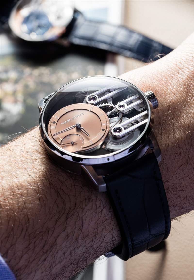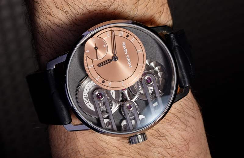 那么重力等力是什么意思呢?好吧,重力,也許是因?yàn)樽詣?dòng)上鏈系統(tǒng),但相等的力與 Armin Strom 與差的等時(shí)性作斗爭(zhēng)的努力直接相關(guān)。機(jī)械彈簧動(dòng)力手表的問(wèn)題在于,當(dāng)主發(fā)條完全上弦或幾乎完全松開(kāi)時(shí),它會(huì)為齒輪系提供非常不同的動(dòng)力量。從發(fā)條到機(jī)芯其余部分的恒定力是使手表在兩天、三天或機(jī)芯中包含的任何動(dòng)力儲(chǔ)備期間顯示時(shí)間時(shí)保持可接受的準(zhǔn)確度的關(guān)鍵部分。手表在 10 小時(shí)的動(dòng)力儲(chǔ)備中保持準(zhǔn)確沒(méi)有任何實(shí)際意義,而在休息期間,它非常不準(zhǔn)確。為此原因,